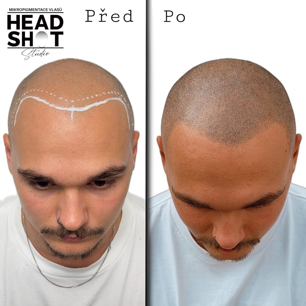 Díky jemným pigmentovým bodům, které precizně napodobují vlasové folikuly, dokážeme vytvořit iluzi plné vlasové linie. Ať už potřebujete zakrýt řídké oblasti, obnovit vlasovou linii nebo zamaskovat jizvy.